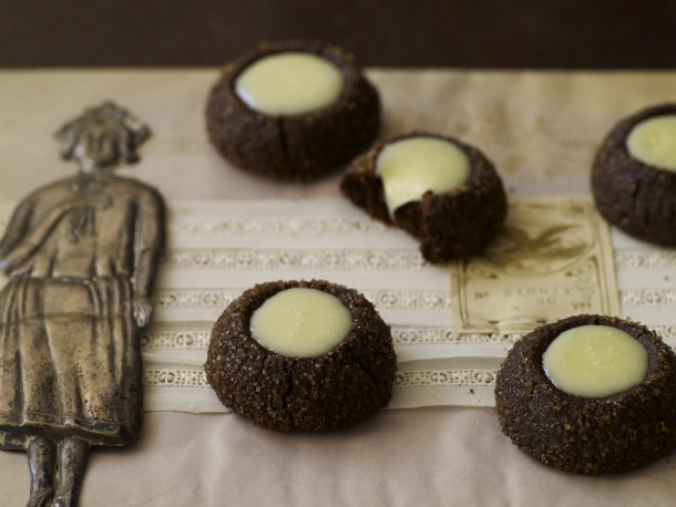 - Stir in the peppermint extract. Fill the thumbprint cookies with the white chocolate ganache and refrigerate them until set, about 30 minutes.